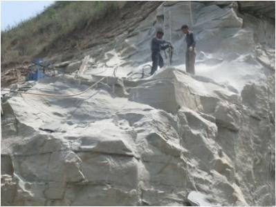 1.用风枪等设备在需要破拆的岩石或混凝土上设置分裂点并钻孔。