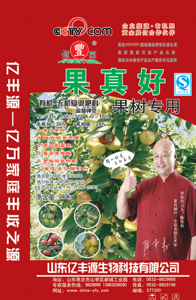 产品介绍【产品名称】亿丰园果真好有机-无机复混肥料 【产品介绍】本产品中高含量的有机质可以有效改良土壤结构,提高土壤保肥蓄水能力,生化骨粉中高含量的钙元素可供植物营养吸收,改善作物品质;有益微生物可以显著改善土壤结构,协助植物营养吸收。高含量的氮元素可以有效促进作物生长,较高的钾含量有利于明显改善作物品质,提高瓜果甜度。长期使用本产品对作物中经常出现的缺钙症状、缺钾症状有明显的改善。【对症施肥】常见作物缺钙症状有大白菜:干烧心番茄、甜椒:脐腐病苹果:苦痘病等大樱桃、桃——裂果、苦痘缩果、落花落果、坐果率低、畸形果、干尖、死芽、流胶、根癌红提葡萄——大小粒、着色差、色不均、裂果、烂根、黄叶甘蓝、白菜和莴苣等叶焦病,【营养配方】产品属性成分 含量(%) 有机质 ≥ 20 总养分 ≥ 30 N ≥ 13 P2O5 ≥ 7 K2O ≥ 10 生化骨粉、络合微量元素、进口氨基酸、螯合腐殖酸、有益微生物、海藻活化酶制剂等