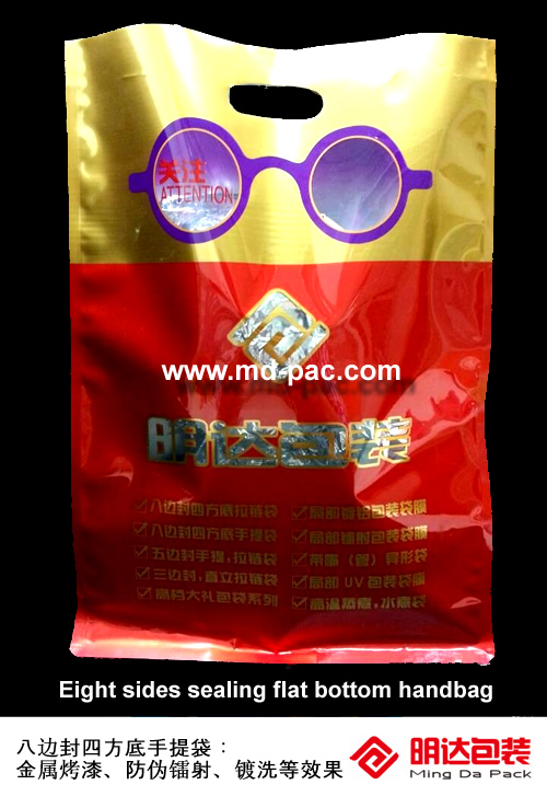 The hand bags mainly "Mingda gold" and "Mingda red" color, with a number of special techniques such as aluminum silver words (anti fake function), plating washing windows 、local laser anti-counterfeiting, crystal clear so that the packaging highlights the pearly and dazzling ray of light.