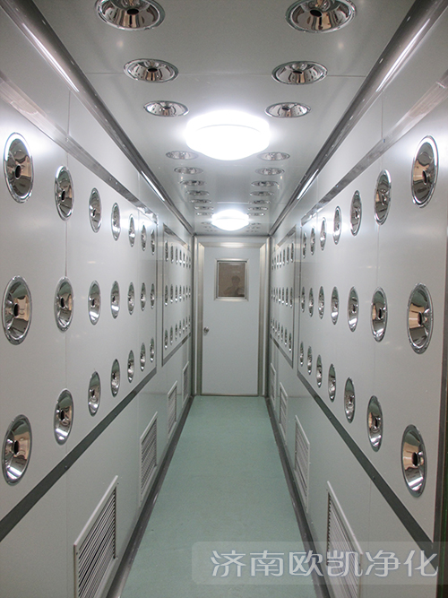 产品介绍洁净风淋室 净化风淋室 济南风淋室厂家 济南风淋室专业生产厂家定做-济南欧凯!产品属性风淋室 1. 采用全自动控制运行,双门电子互锁,感应自动吹淋,吹淋时双门锁闭。 2. 冷板喷塑系列,采用多层酸洗技术,静电无尘喷塑处理。 3. 采用不锈钢拉手、加厚不锈钢底板、不锈钢喷嘴作为基本配置。 4. 采用数显吹淋时间,风淋时间为0~99s可调,并显示已风淋时间。 5. 采用新型设计理念设计的送风吹淋系统风速可达到25m/s~32m/s的超强风速,确保进入洁净室的人员及货物达到彻底除尘的完美效果。其他说明风淋室的作用 风淋室是人员进入洁净室无尘车间所必备的净化设备,通用性强,可与所有的洁净室和洁净厂房配套使用,工作人员进入车间时,必须通过此设备,用强劲洁净的空气,由可旋转喷嘴从各个方向喷射至人身上,有效而迅速清除去附着在衣服上的灰尘、头发、发屑等杂物,它可以减少人进出洁净室所带来的污染问题。风淋室的两道门电子互锁,可以兼起气闸室的作用,阻止外界污染和未被净化的空气进入洁净区域。杜绝工作人员将头发,灰尘、细菌带入车间,达到工作场地严格的无尘净化标准,生产出高质量的产品.交易说明洁净风淋室 净化风淋室 济南风淋室厂家 济南风淋室专业生产厂家定做-济南欧凯!