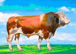 西门塔尔牛原产于瑞士,并不是纯种肉用牛,而是乳肉兼用品种。但由于西门塔尔牛产乳量高,产肉性能也并不比专门化肉牛品种差,役用性能也很好,是乳、肉、役兼用的大型品种。从1990年山东省畜牧局牛羊养殖基地引进该品种。此品种被畜牧界称为全能牛。我国从国外引进肉牛品种始于20世纪初,但大部分都是新中国成立后才引进的。西门塔尔牛在引进我国后,对我国各地的黄牛改良效果非常明显,杂交一代的生产性能一般都能提高30%以上,因此很受欢迎。