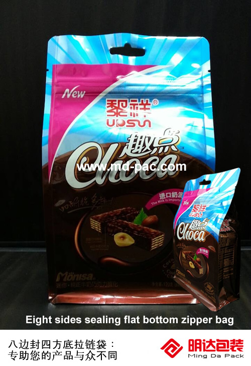 This kind of bag is made of aluminum foil material, through a combination of special printing techniques and application of different materials, can be derived from a dozen featureseight sides sealing bags, such as the positive side of the bag can be displayed different effects, such as light, laser, such as the rainbow local effect; anti fake aluminum silver words; windowing aluminizing etc.