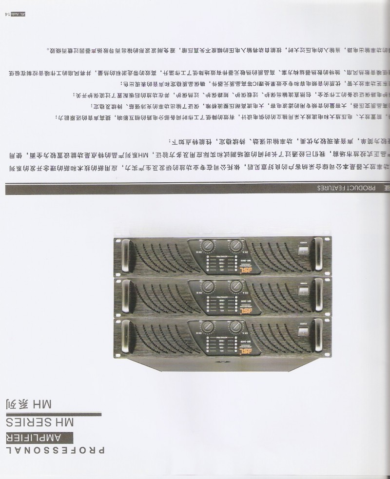 MH系列功率放大器是本公司综合采纳客户的良好意见后,依托公司在专业功放的研发及生产实力,应用新的技术和新的理念开发的系列产品。在产品正式投放市场前,我们已经通过了长时间的现场测试和实际应用及多方验证,MH系列产品的特点是功能设置较为全面,使用及状态检查较为简单,声音表现较为优美,功率输出强劲、持续稳定,性能特点如下: