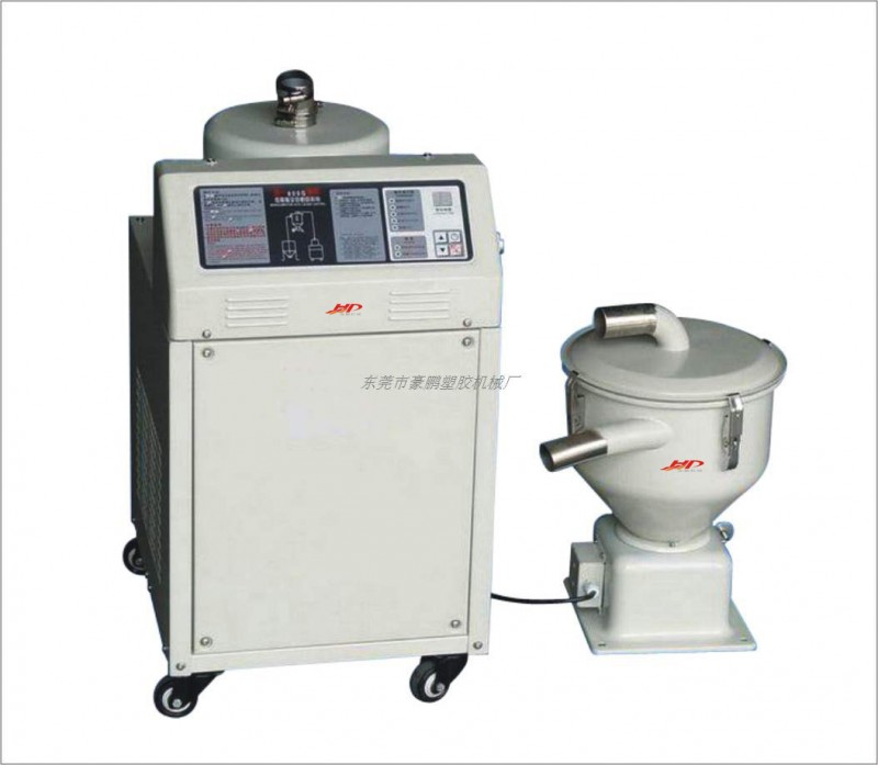 ¨ 当小料斗没有料的时候,机械空气开关会朝下坠打开感应开关,当感应开关打开后主机的继电器打开让马达启动运转,马达运转带动抽风装置,开始通过空气过滤器到小料斗,在吸风的作用下机械式空气开关向上关闭出料口,形成小料斗真空,进料口有料管通往料斗,原料开始进入小料斗原料被过滤网隔离不会吸入马达方向,当马达设定运作时间到达后停止。小料斗没有真空后机械式空气开关下坠,原料落入干燥机内,循环结束;