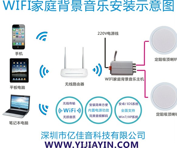 在持续发展过程中,产品已广泛应用为、住宅、别墅、会所、酒店、饭店、KTV小型会议室,等诸多场所,积累了大量的实践项目经验,在家庭背景音乐领域不断前进。