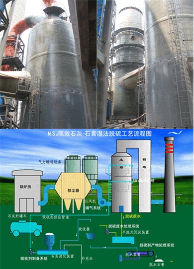 湿法烟气脱硫是应用最为广泛的脱硫技术,湿法烟气脱硫的基本过程是用含脱硫剂的溶液或浆液在旋流塔板中洗涤烟气,使烟气中的二氧化硫在旋流板塔内较好传质条件下,与脱硫液进行较为充分的吸收反应,从而大大降低烟气中的二氧化硫浓度,达到脱硫目的。湿法烟气脱硫可以达到较高的脱硫效率,工程投资和运行费用都较低,管理和维护也较为方便。湿法脱硫的主要缺点是净化烟气的温度较低,应进行净化烟气的再加热,以防露点腐蚀并有利于烟气排放后的烟气抬升。