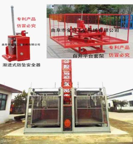 1、采用国家建设部新标准,配有渐进式防坠安全器、自升平台套架,并获得国家专利。