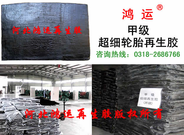 甲级超细轮胎再生胶可用做涂布胶,比普通轮胎再生胶生产的橡胶制品更加乌黑光亮。本产品无需塑炼,工艺简单,细度好,省工省电。