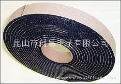 以EVA发泡为基材,厚度1mm,涂上热熔压敏胶,复合防粘纸而成,用于杯垫,