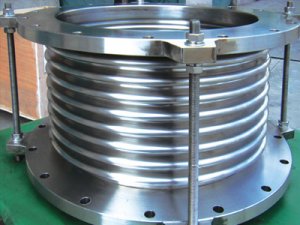 金属波纹膨胀节是为了补偿因温度差与机械振动引起的附加应力,而设置在容器壳体或管道上的一种挠性结构。利用其工作主体波纹管的有效伸缩变形,以吸收管线、导管、容器等由热胀冷缩等原因而产生的尺寸变化,或补偿管线、导管、容器等的轴向、横向和角向位移。也可用于降噪减振、供热上,为了防止供热管道升温时,由于热伸长或温度应力而引起管道变形或破坏,需要在管道上设置补偿器,以补偿管道的热伸长,从而减小管壁的应力和作用在阀件或支架结构上的作用力。