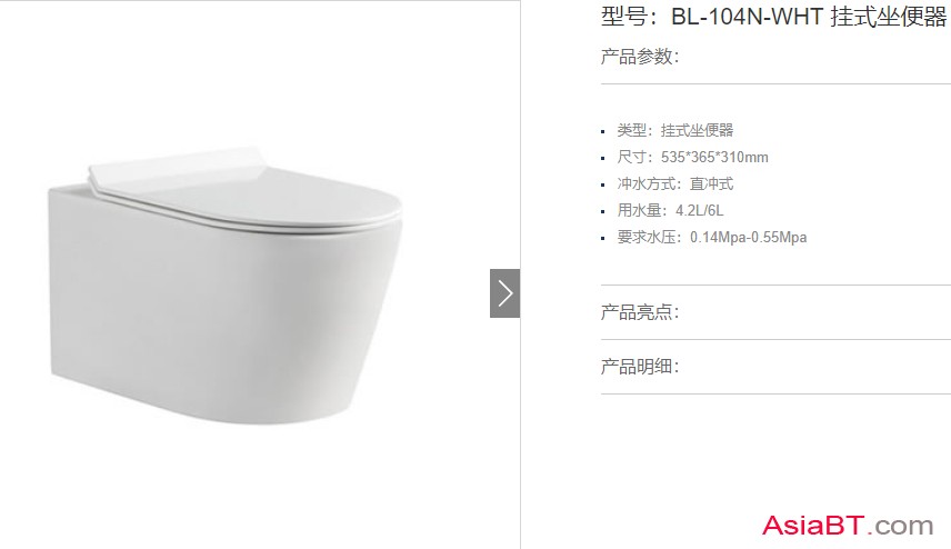 BL-104N-WHT 挂式坐便器