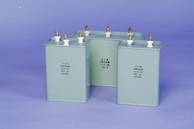 UV电容是专门为特种光源、特种灯具研制生产,其性能稳定,用户满意,使用时一般与变压器配套使用,作用在于补偿功率,平衡电流,使灯保持在稳定的工作状态下正常工作。制作功率(0.5VF—22VF),并可根据用户的不同需求制作不同的规格,已满足您的需求供用户选择使用。UV灯专配电容器,起补偿功率平衡电流作用。质量优良,价格合理。电容器规格从1VF—300VF,耐压从1 000V—4500V。广泛用于高频、直流、交流和脉衡电路中。UV电容器是与U V变压器,UV灯管一起使用的光源类产品采用组合式,便于安装、性能可靠、防潮性好、寿命长等特点.供应UV电容