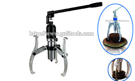 液压拉马(轴承起拔器)是以液压起动杆直接前进移动,故推动杆本身不作转动。钩爪座又可随螺纹直接作前进后退之调距,操作时只要把手前后小幅度摆动,油压起动杆前移,钩爪相对应后退,把被拉物体拉出.