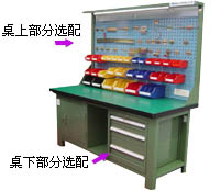 坚固的工作桌框架,可使工作台承重1000kg.多种工作台面(耐冲击、耐酸、耐碱、耐磨),可配合不同的使用要求。可以直接在工作台上加装台虎钳