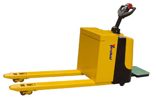 托盘车配有站立平台,操控者可随车驾驶。无级调速的电动行走方式,大功率的直流电机液压站,符合人机工程学的手柄,使该车型满足装卸承载能力强、托盘快速运转、操控方便舒适的现代物流搬运要求。该车型随车配备高性能动力电瓶和便携式