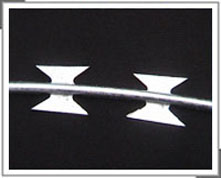 刀片刺绳也称为刀片刺丝、刀片刺网,是一种新型防护网。该产品具有吓阻效果好。美观。施工便利。经济实用等优异特点。主要用于园林公寓。机关单位。监狱。哨所。边防等的圈禁防护。刀片刺网由锐利尖角镀锌钢板或不锈钢薄板做刀片,高张力钢丝做芯线组合而成的阻绝器材。由于刺网造形独特不易触摸,因而能达到极好的防护隔离效果。刀片刺绳按照安装方法不同可分为:蛇腹式刀片刺绳,螺旋式刀片刺绳,直线型刀片刺绳,平板式刀片刺绳,刀片刺绳焊接网等。产品的主要材质有镀锌板和不锈钢板,防腐方式有电镀和热镀。一般来讲热镀的优于电镀的,更加抗氧化,防腐,耐晒(但价格稍微贵一点)抗拉抗压能力强。